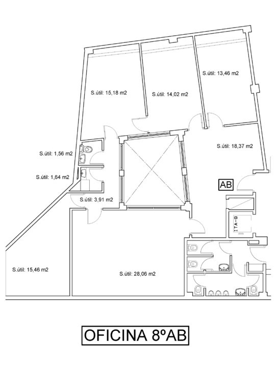 Superficie útil: 115,04m2; superficie construída en oficina: 127,22m2; superficie construída con partes comunes: 151,46m2.