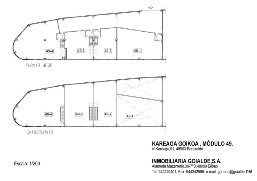 -La nave 49-2 está distribuida en dos plantas: de carácter industrial-almecén en planta baja (78,90 m2) y oficina en planta alta (117,21 m2).