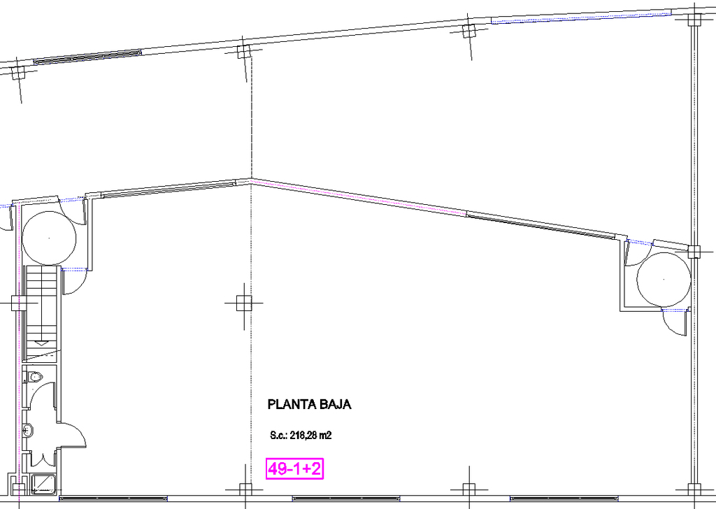 Planta baja: nave con dos puertas preleva y aseos. 218,28 m2.