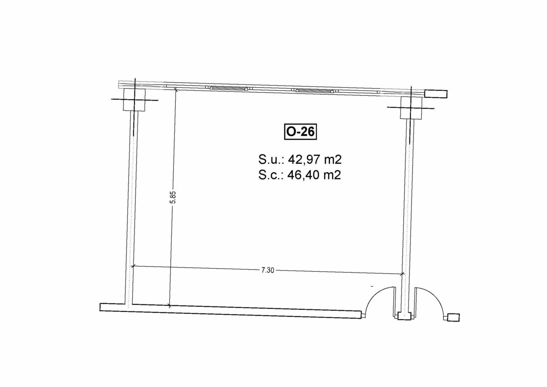 Superficie construída en oficina: 46,40m2; superficie construída con partes comunes: 54,51m2. Dispone de soldado de gres porcelánico, falso techo modular, puerta blindada,